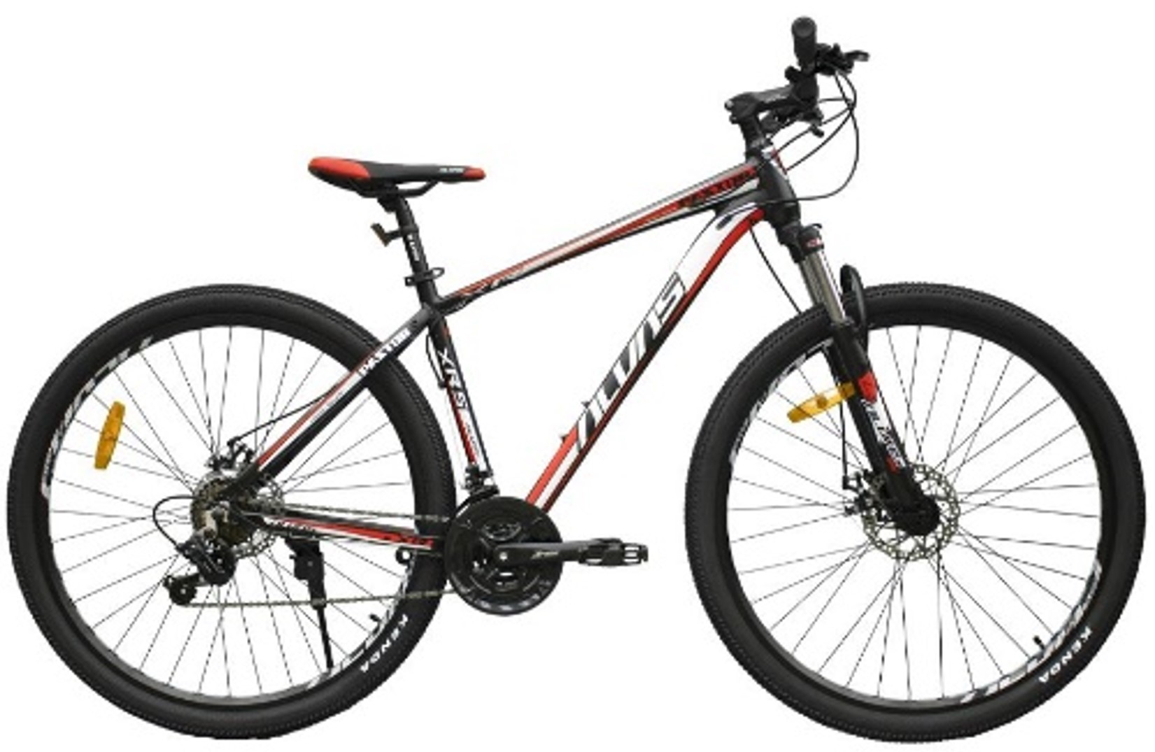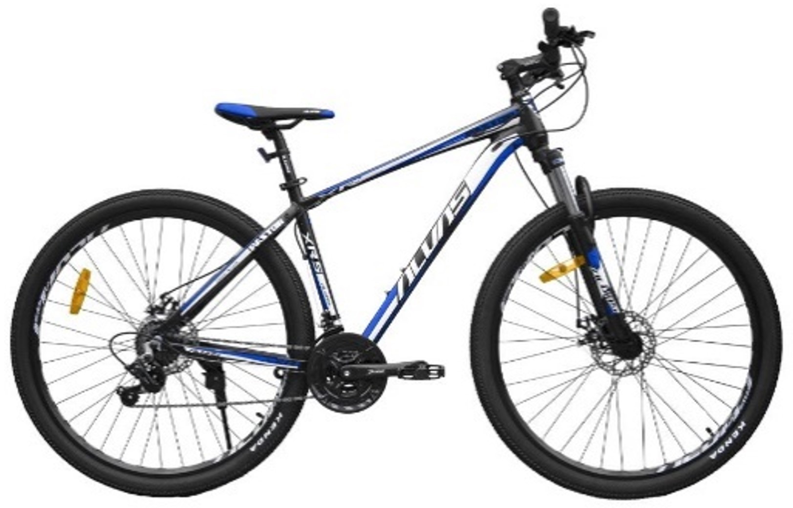 La bicicleta está disponible en colores verde, azul y rojo. Su estructura incluye un poste y catalina de aluminio, con dimensiones de 185 cm de largo, 110 cm de profundidad y 171 cm de ancho. Pesa 17 kg y cuenta con frenos de discos YINXING, llantas KENDA 29 x 2.10 y un piñón de 7 velocidades INDEX. Además, tiene desviador y descarrilador SHIMANO, palancas SHIMANO ST-EF51 y se presenta en un pack de 3 unidades.
