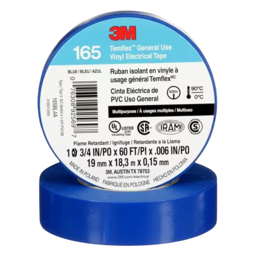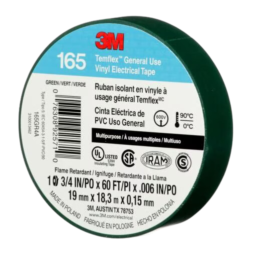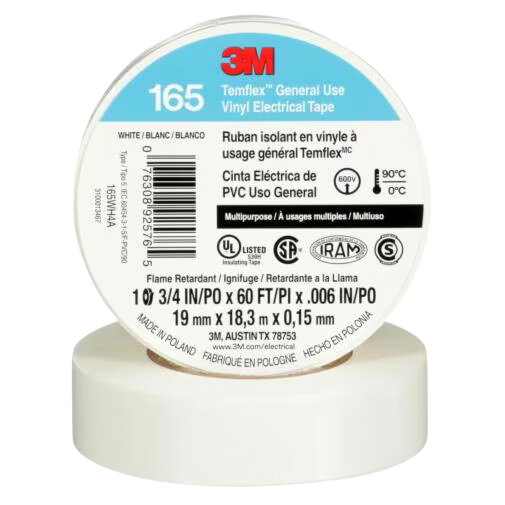La cinta aislante Temflex tiene un respaldo de PVC y un adhesivo de caucho. Viene en diferentes colores: rojo, blanco, azul, amarillo, verde y negro. Tiene un grosor de 0.15 mm y una elongación de ruptura de 200%.