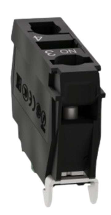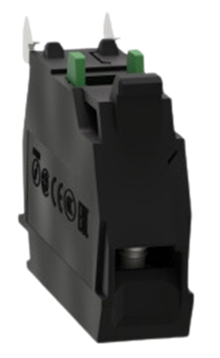 El bloque de contactos Harmony ZB es único y utiliza bornes de tornillo para una rápida y sencilla sustitución y configuración de tus pulsadores y selectores. Se puede instalar o sustituir fácilmente en unidades de pulsadores y selectores completos XB4 o XB5 mediante clip y se conecta a los circuitos de control mediante bornes de tornillo simples.