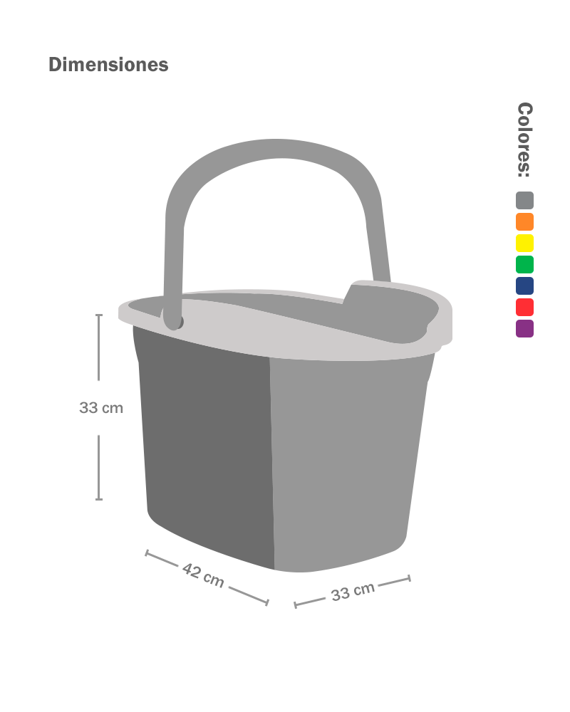 Set de limpieza con diseño moderno y asa anatómica. Incluye balde negro con mopa de algodón y canastilla en color.